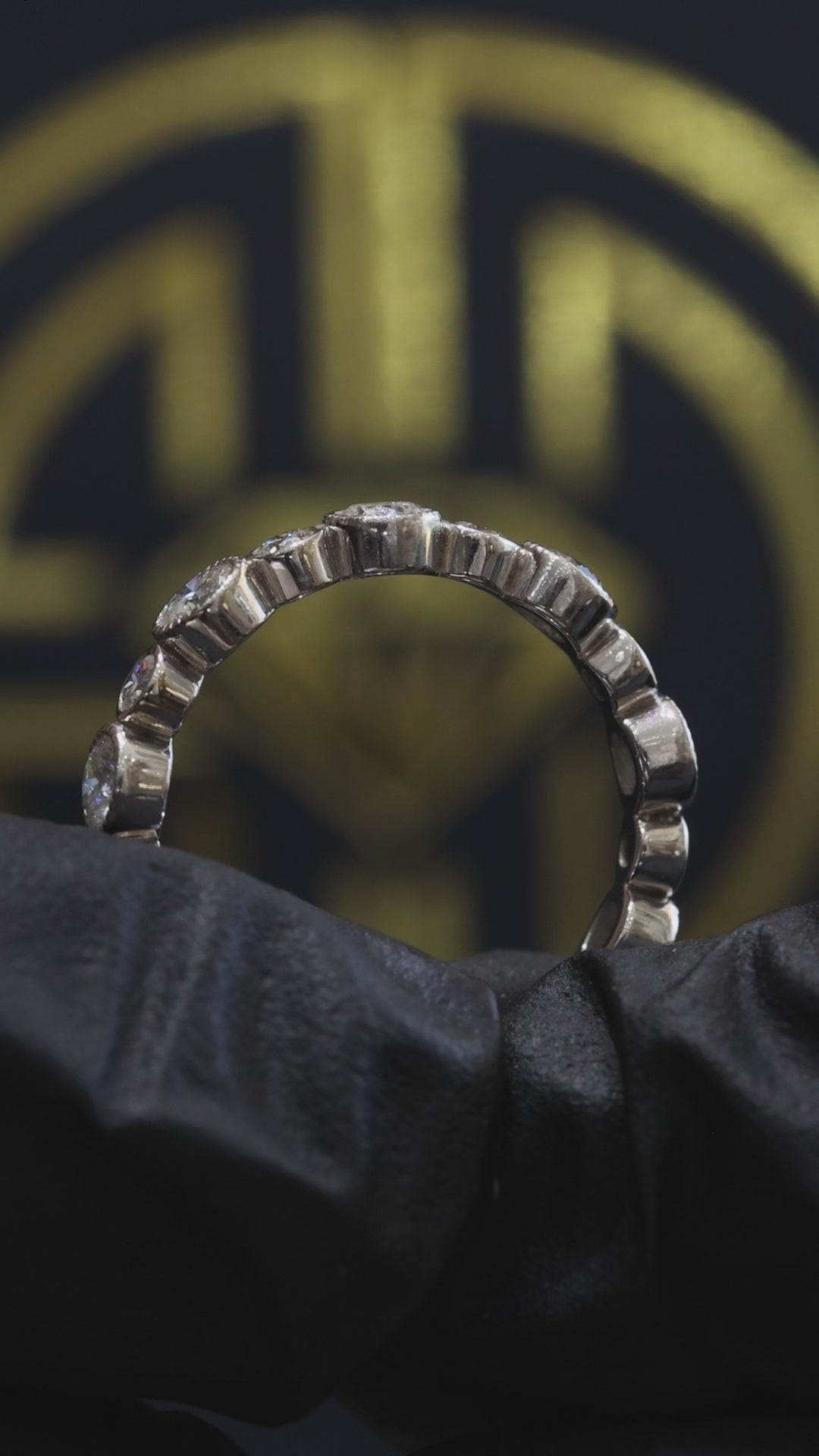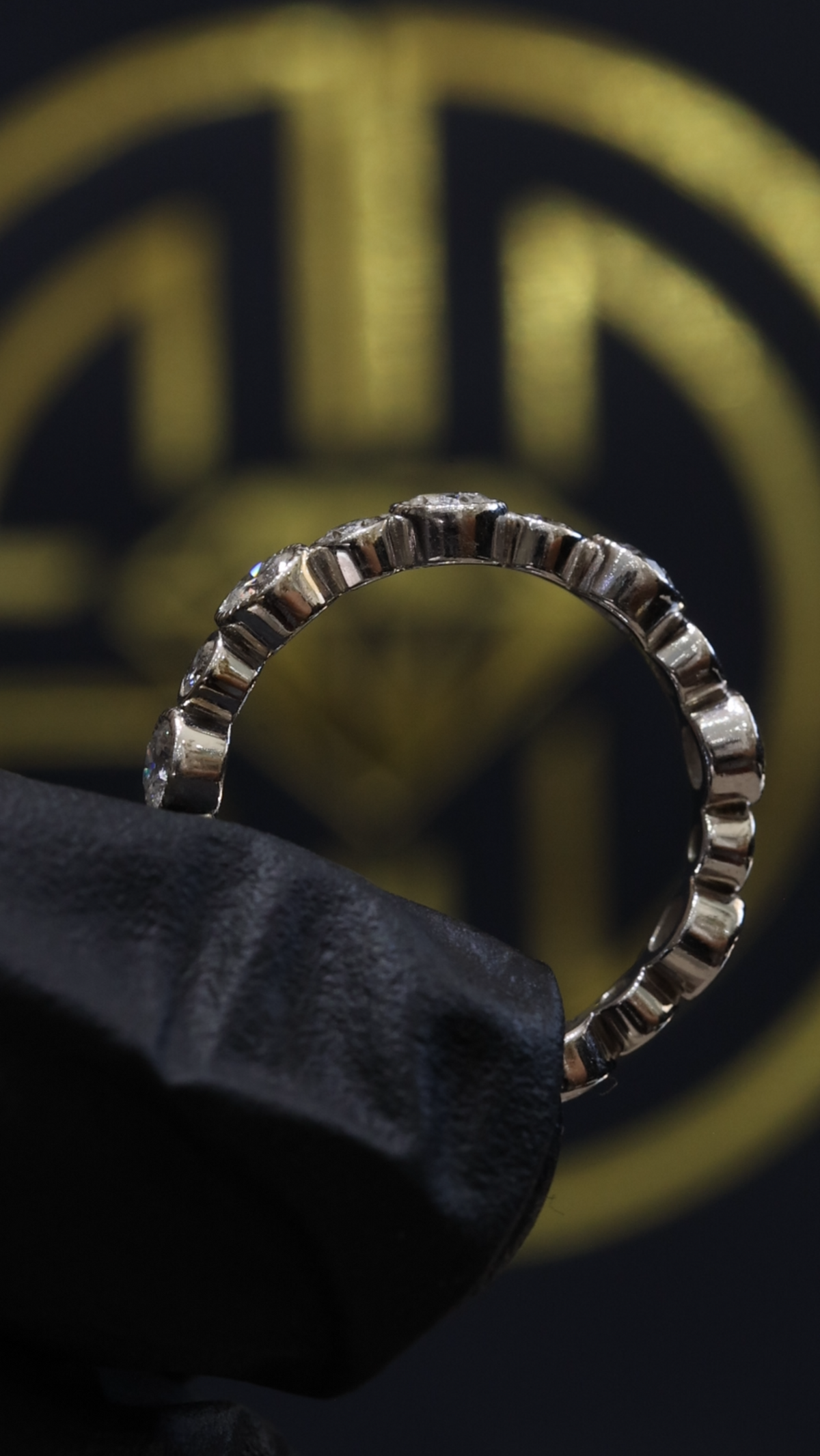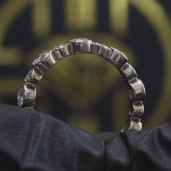 Designed for those who appreciate modern elegance with lasting comfort, this alternating bezel-set eternity band delivers both visual interest and timeless sophistication.