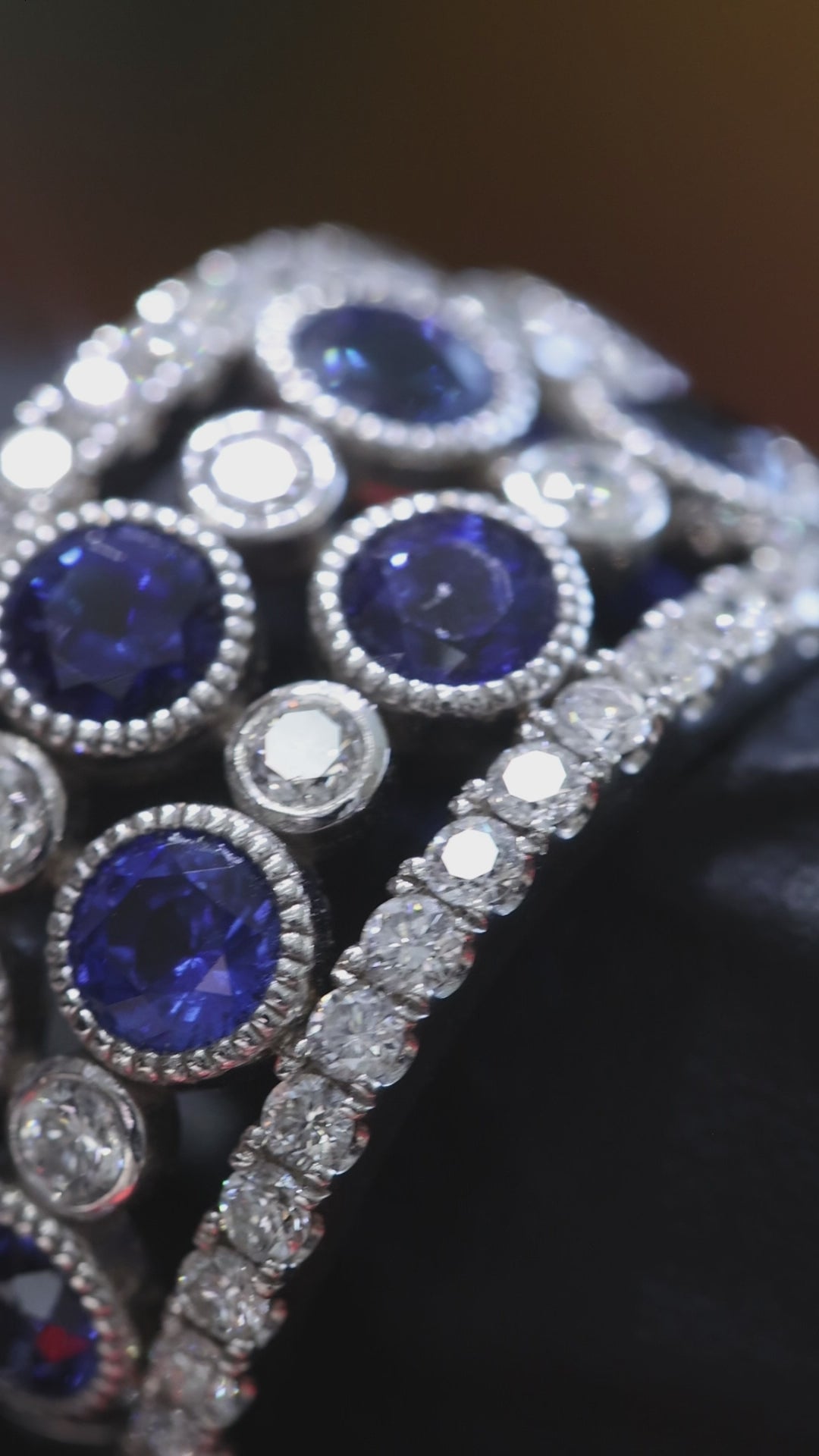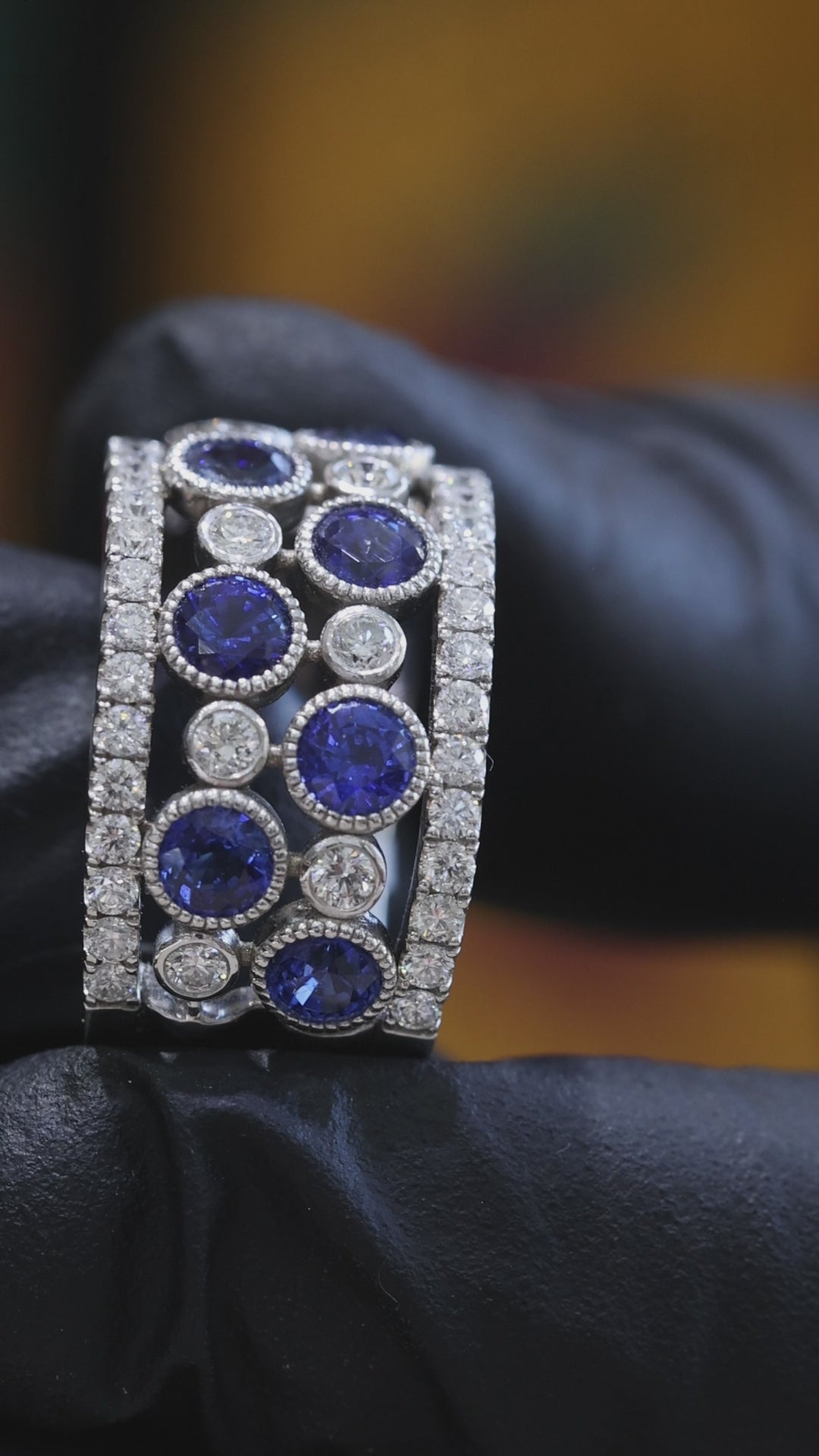 Designed for those who appreciate bold color and refined craftsmanship, this sapphire and diamond band delivers luxury, dimension, and lasting presence.