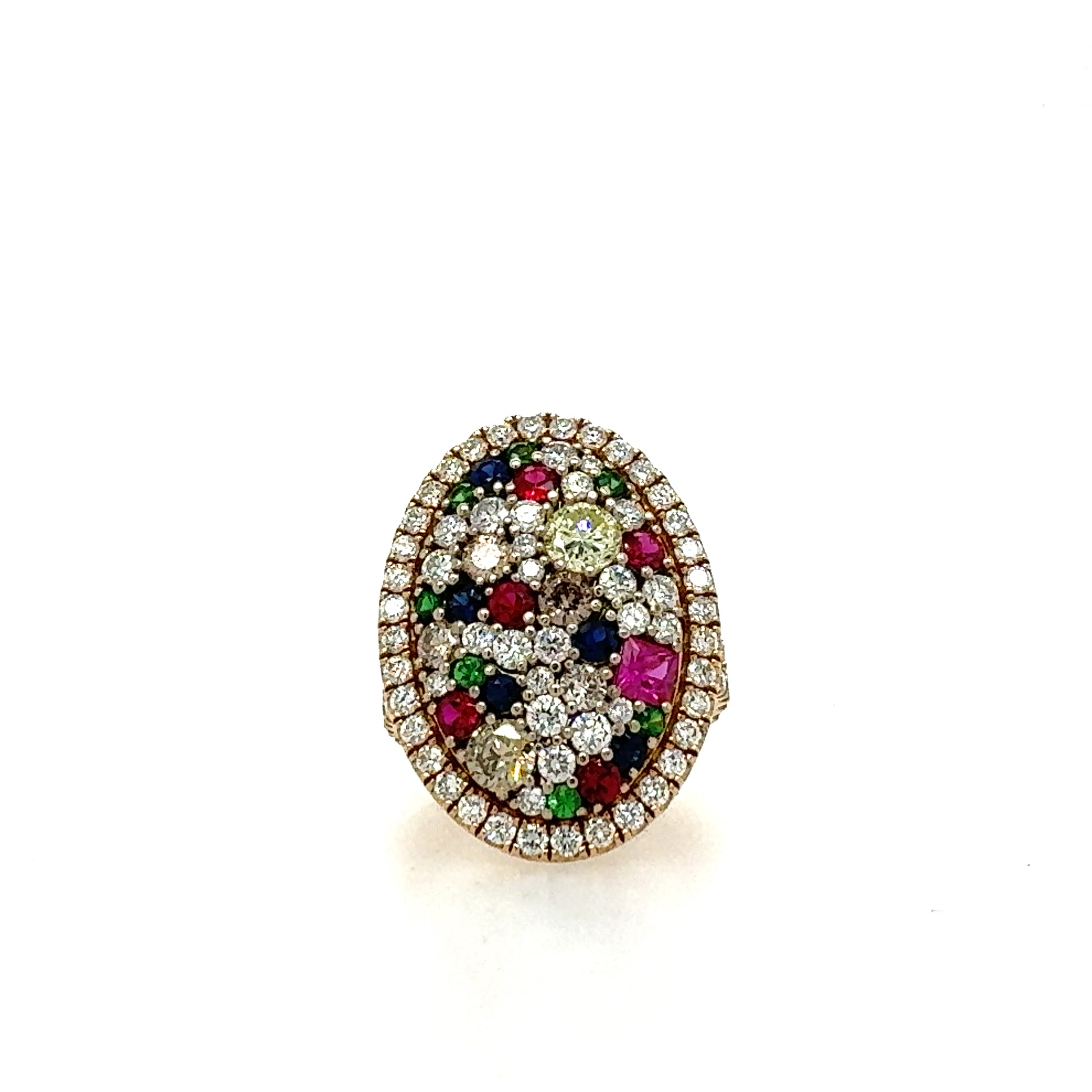 14kt White Gold 3.20ctw Natural Diamonds Near Colorless to Fancy Color of SI to VS clarity and 1.10ctw in multi color Natural Gemstones