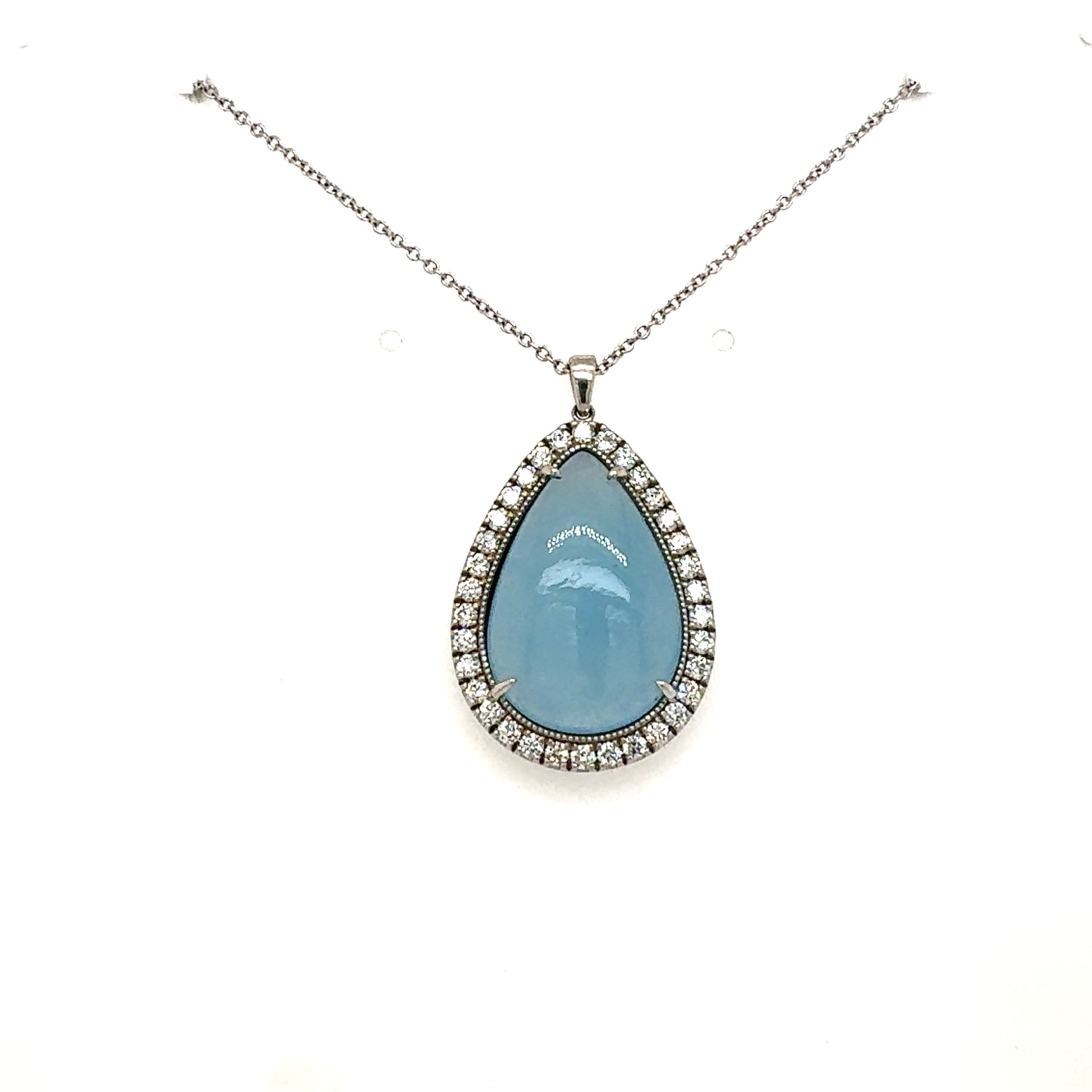 14kt White Gold 5.00ct Milky Aquamarine Ring with RBC Diamonds .65ctw GH color SI clarity