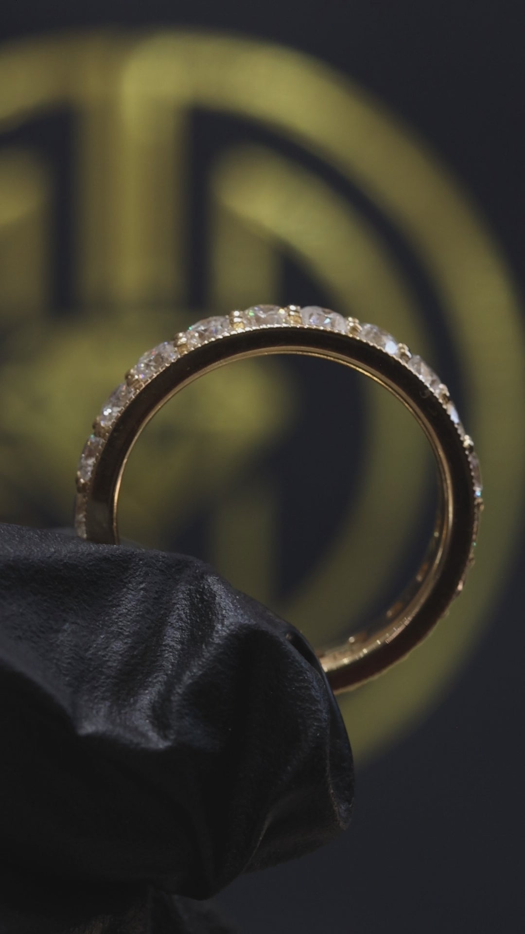Designed for everyday luxury, this full eternity band offers continuous sparkle from every angle, making it an ideal wedding band, anniversary ring, or sophisticated stacking piece.