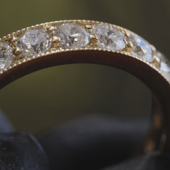 Round Diamond Eternity Band in 14K Yellow Gold milgrain edge | 1.60 CT