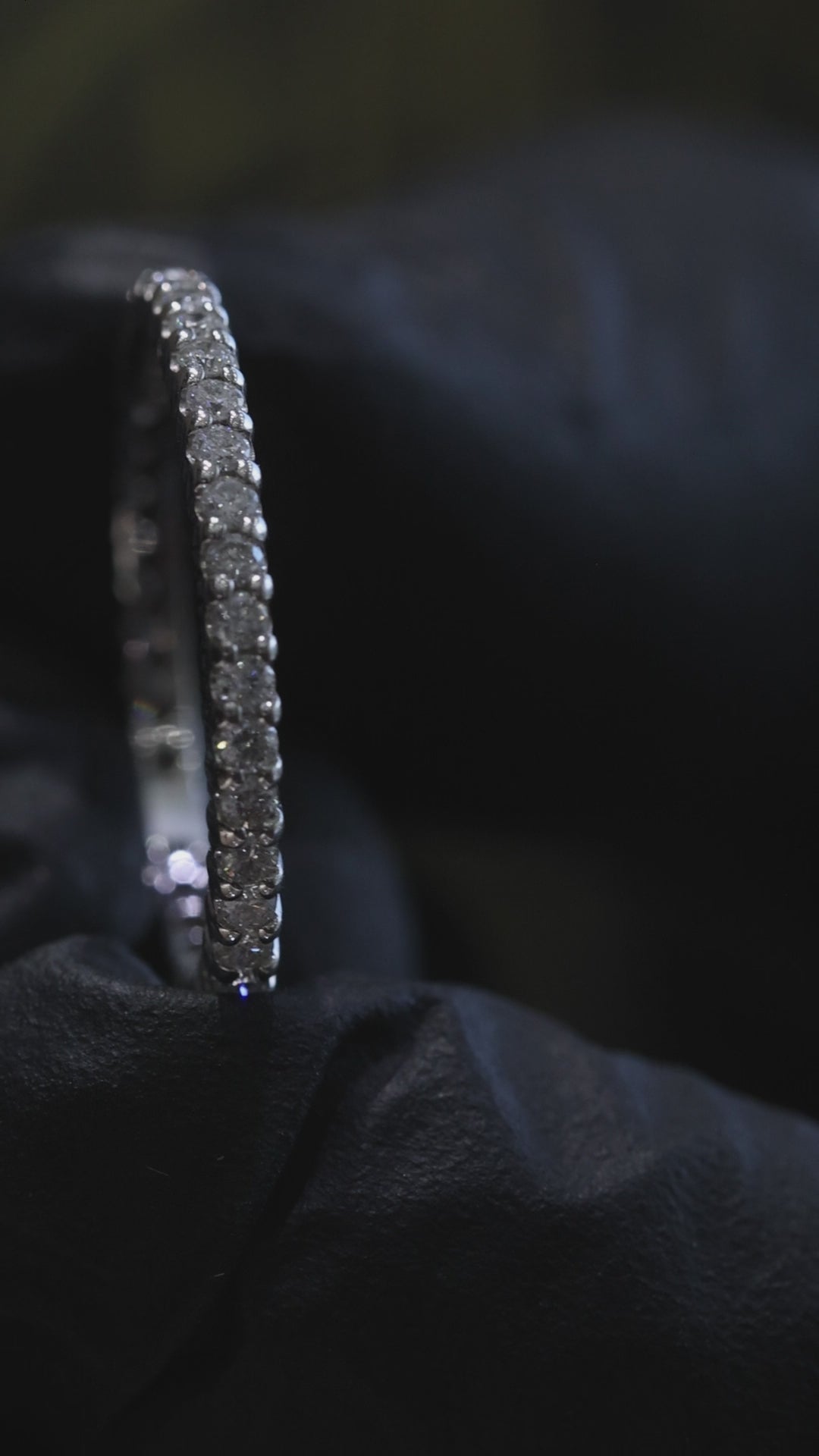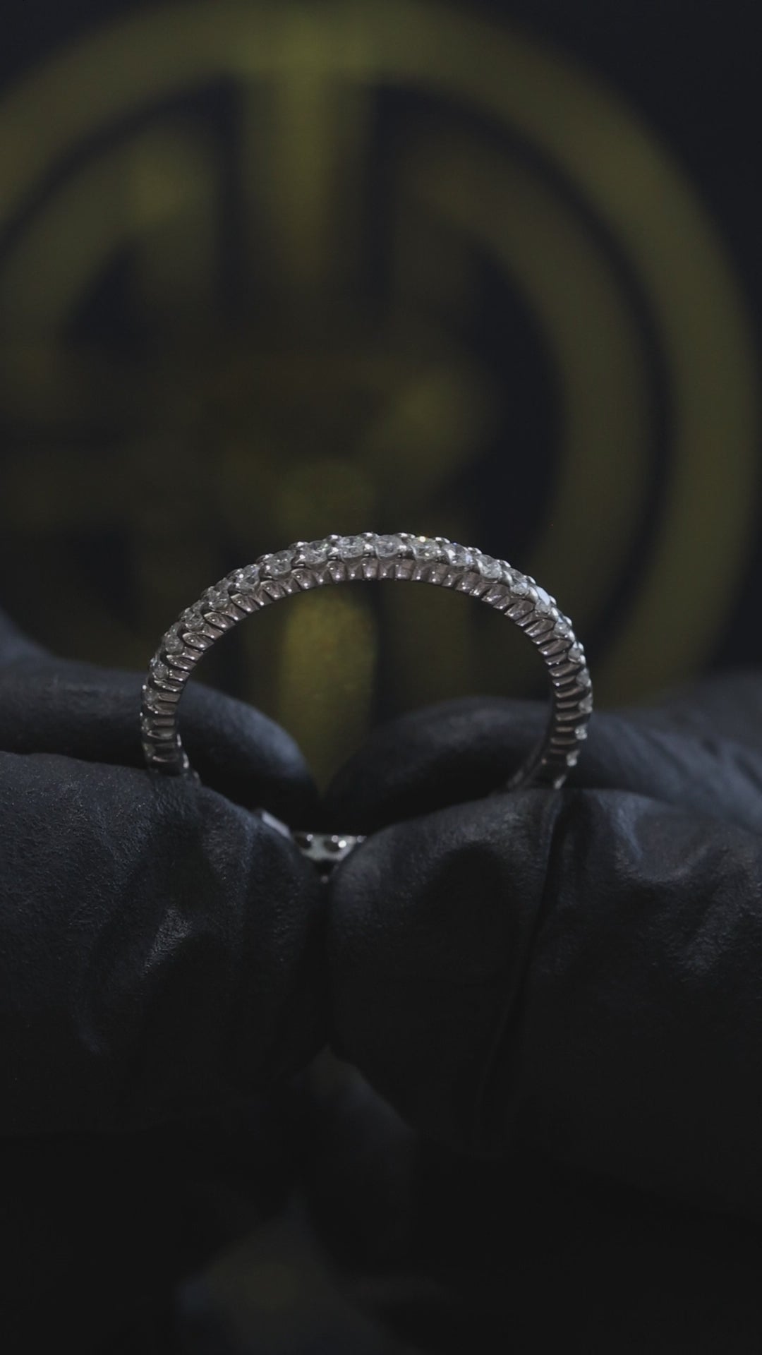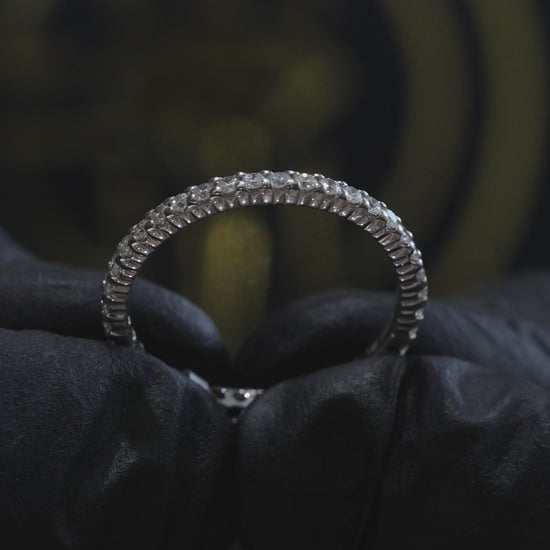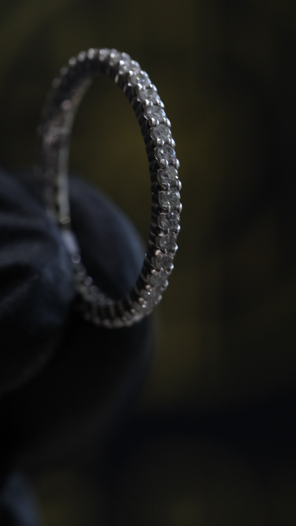 Designed for timeless versatility, this pavé diamond eternity band is perfect as a wedding band, anniversary ring, or a delicate stacking piece to complement engagement rings and classic bands.