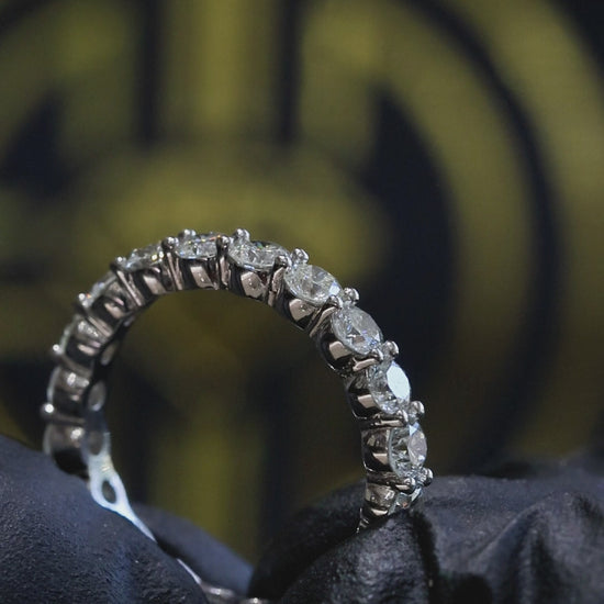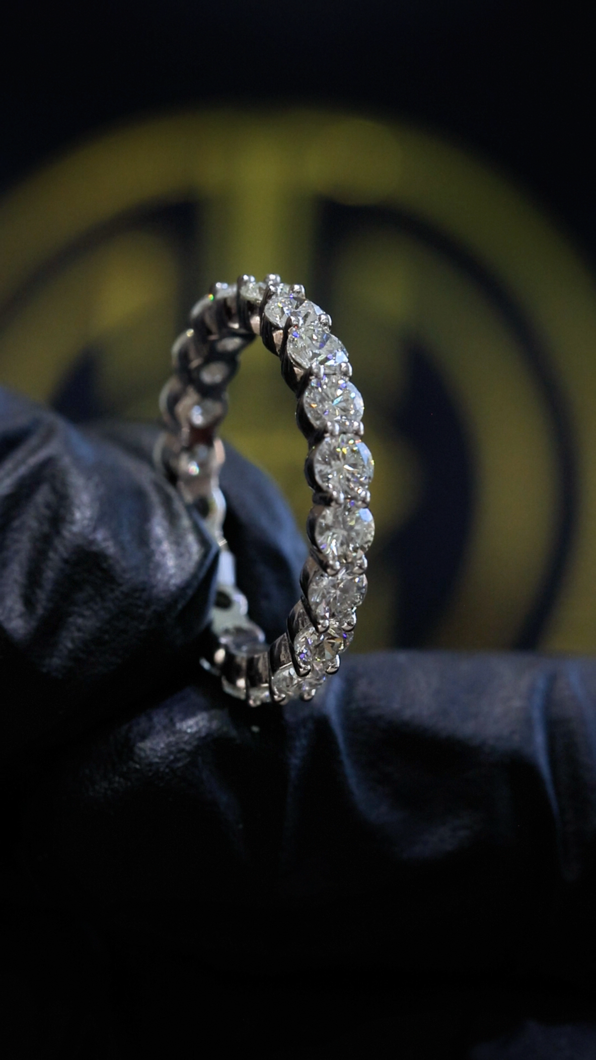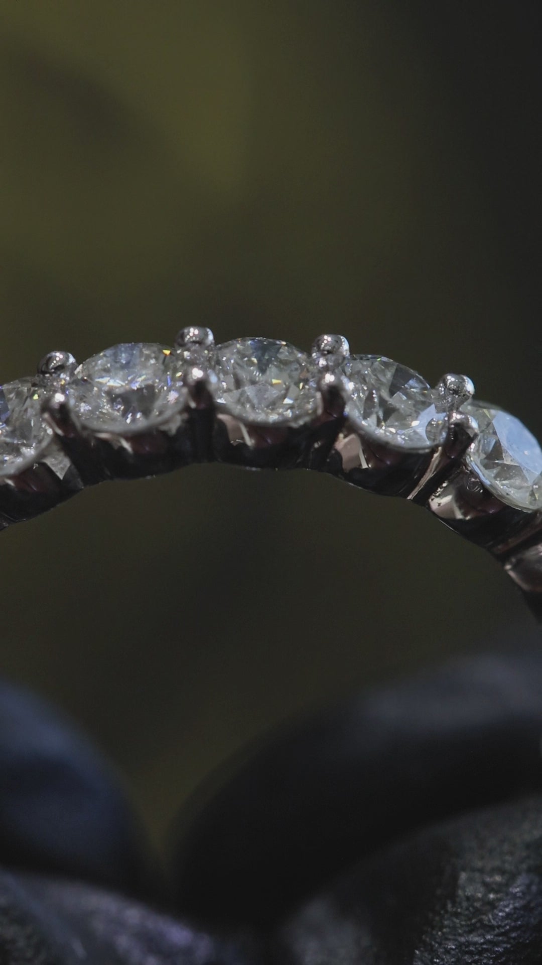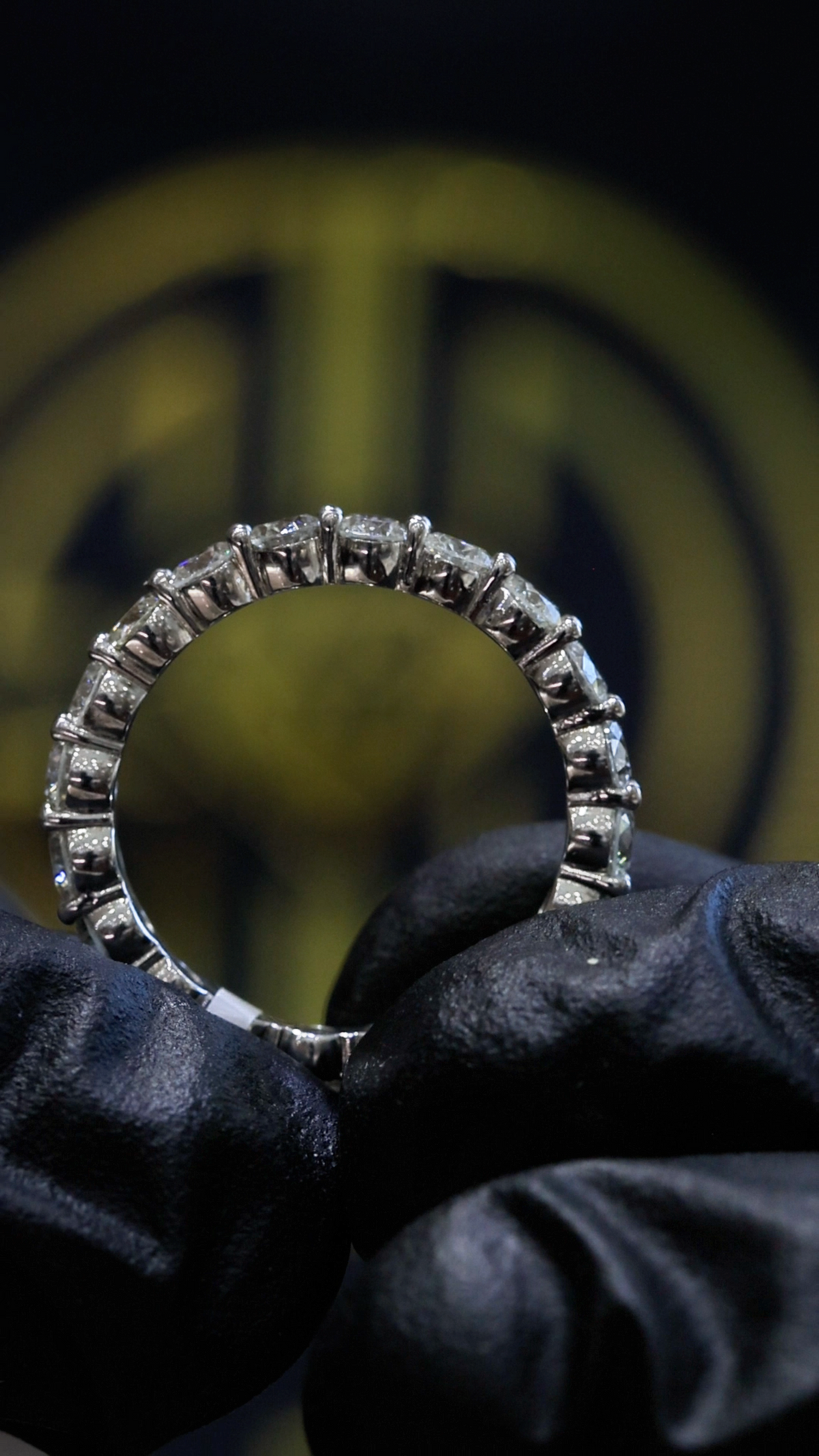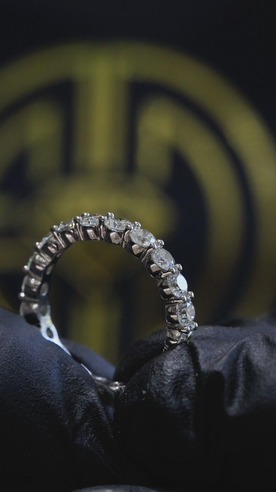 Designed for classic elegance with noticeable brilliance, this shared-prong eternity band is perfect as a wedding band, anniversary ring, or a statement stacking piece alongside engagement rings.
