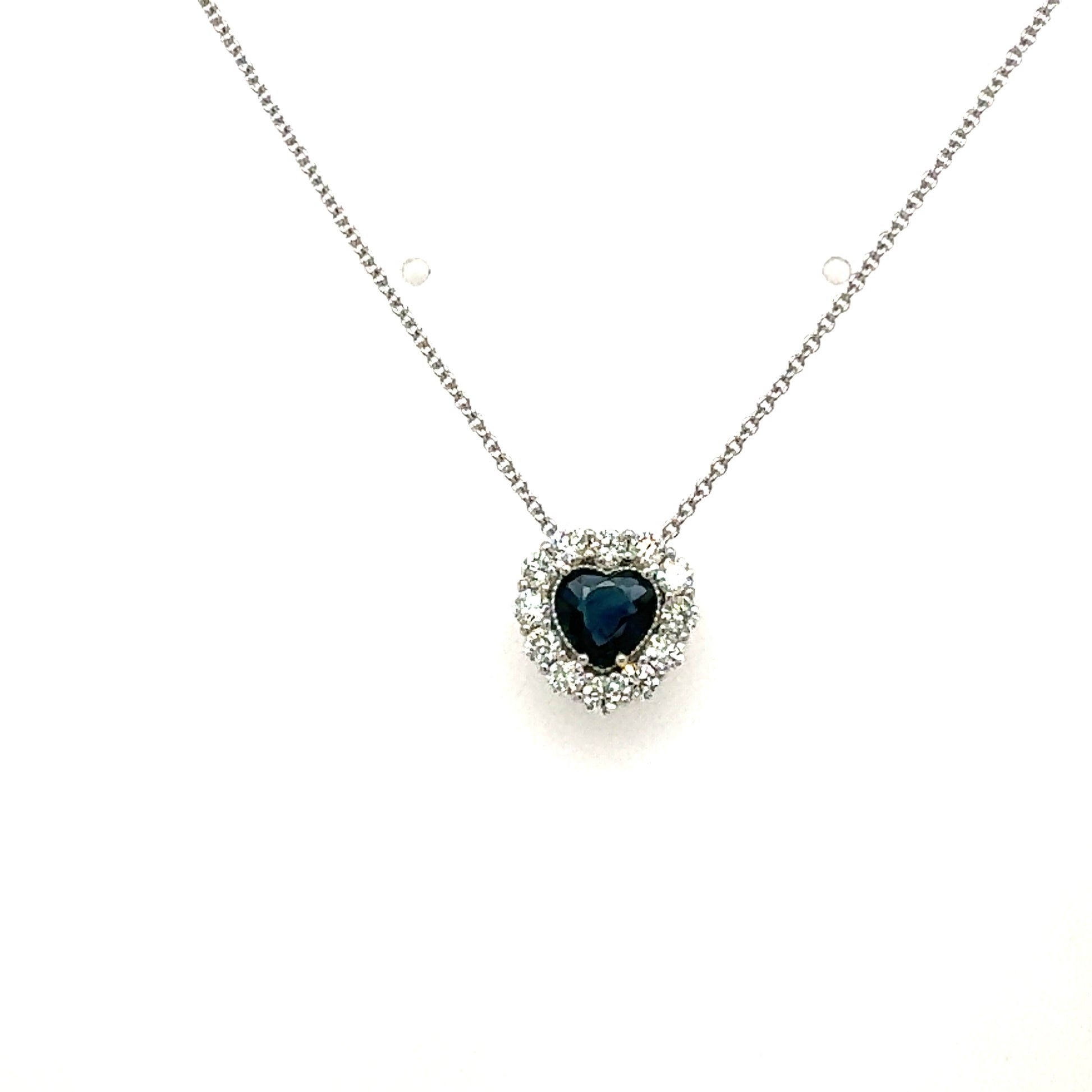 14kt White Gold .50ctw Heart shaped Natural Sapphire with .50ctw RBC Natural Diamonds of GH color SI clarity