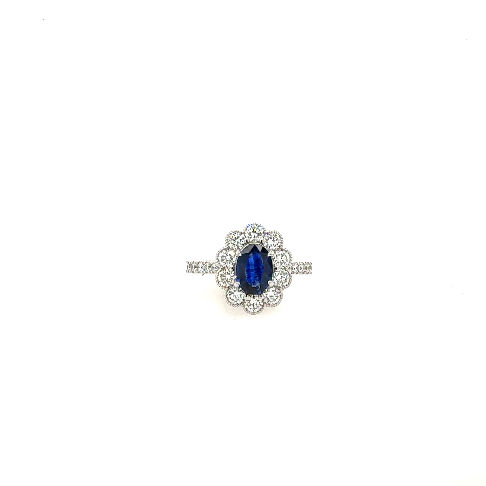 14kt White Gold .78ct Sapphire Ring with 1.16ctw RBC Diamonds of GH color SI clarity