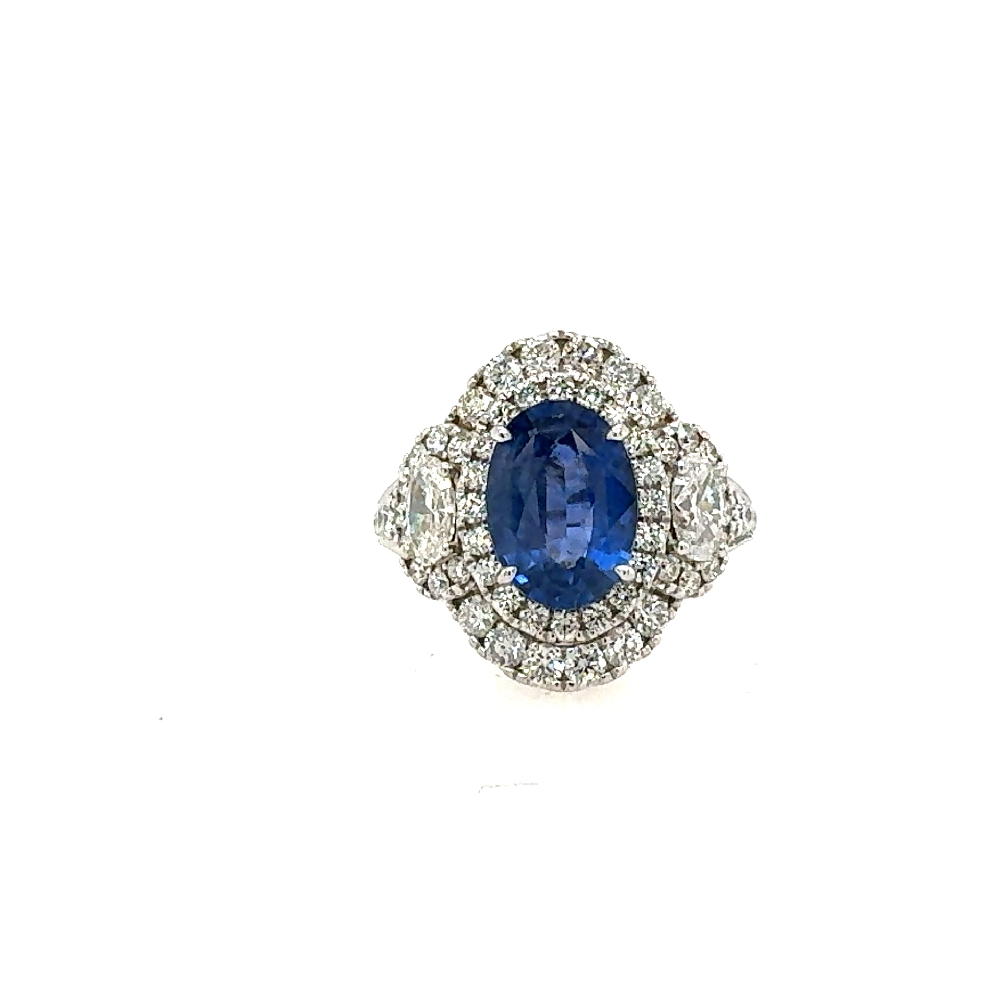 14kt White Gold 2.75ct Natural Sapphire Ring with 1.66ctw Natural Diamonds of GH color SI clarity