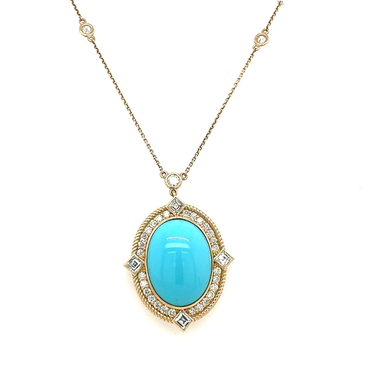 14kt Yellow Gold 19x15mm Turquoise Pendant with 1.80ctw RBC Diamonds of GH/SI