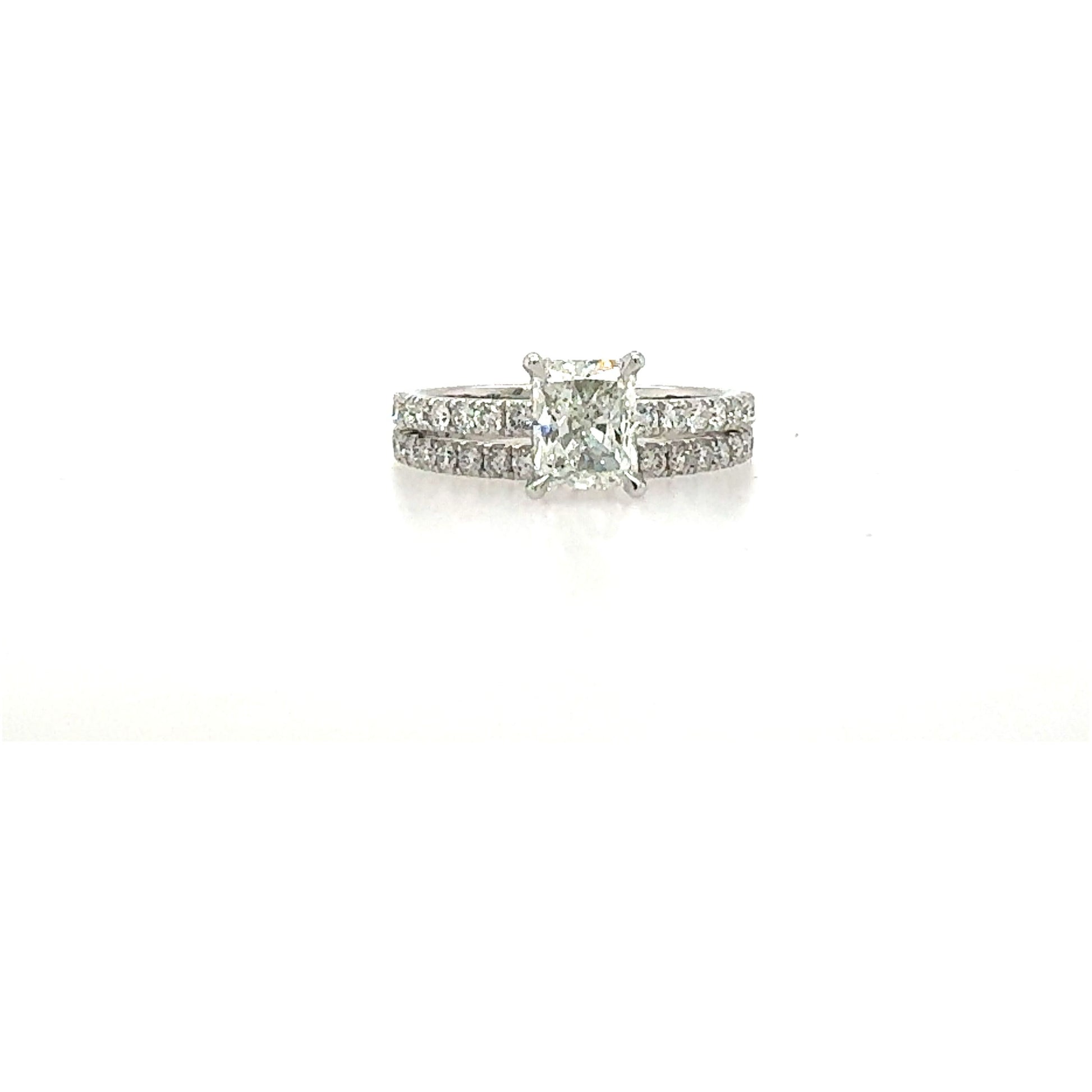 14kt White Gold 1.00 Princess Center and .50ctw RBC Natural Diamonds of GH color SI clarity 1.50ctw